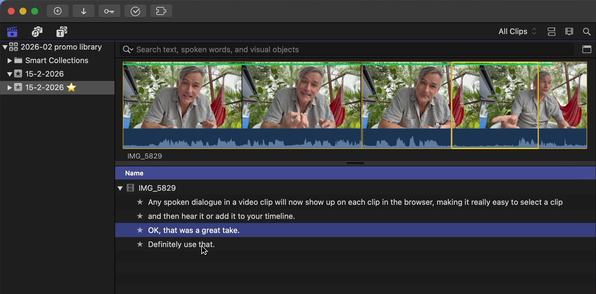 Notes on Keywords keeps favorites intact, but it changes the way you’ll need to interact with transcripted clips inside FCP.